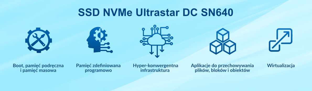 Oferują lepszą wydajność i szybkość reakcji w porównaniu z poprzednimi generacjami, o pojemnościach od 960 GB do 7,68 TB w formacie U.2. DC SN640 zawiera BiCS4 3D TLC NAND i kontroler NVMe 1.3 firmy Western Digital, zapewniając nawet 5-krotną poprawę wydajności odczytu w porównaniu z dyskami SSD SATA. Oferuje funkcje niezawodności dla przedsiębiorstw, takie jak ochrona przed utratą zasilania, kompleksowa ochrona ścieżki danych oraz pięcioletnia ograniczona gwarancja.